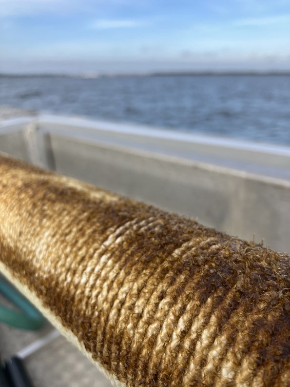 Og kvaliteten af tangen er naturligvis vigtig, for at få det bedst mulige foder. Derfor skal man høste tangen inden den bliver fuld af små muslinger, søpunge, rurer og andre dyr, der uvægerligt sætter sig fast og begynder at vokse på alt i vandet her sidst på foråret.