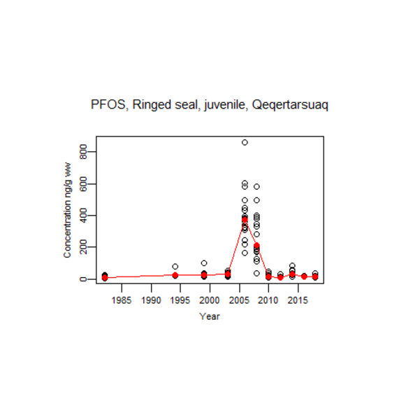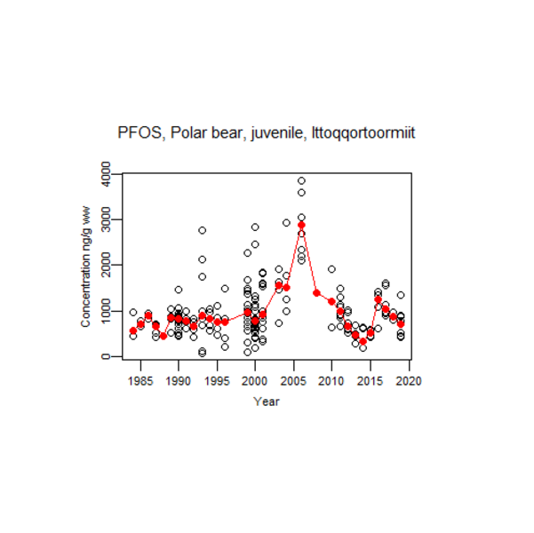 Studies of PFOS in ringed seals and polar bears in Greenland have shown that the concentration rose significantly up to 2005, after which it fell just as markedly in animals from both west and East Greenland. Presumably, the decline is mainly due to the fact that the production from the largest American producer, 3M, ceased in the year 2000.
